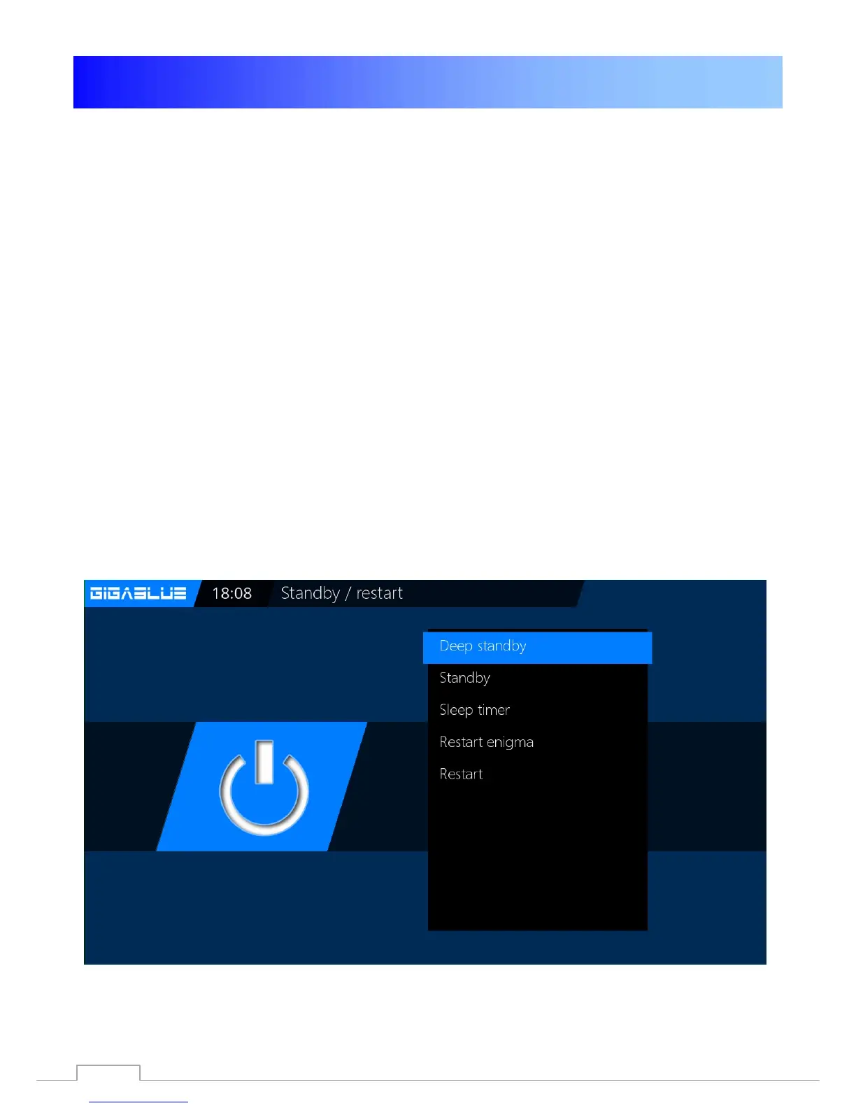 GigaBlue Box goes into deep standby mode. This means that the GigaBlue box is supplied with a