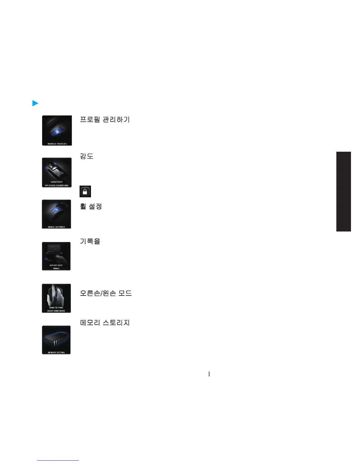 사용자는 슬라이더의 막대를 움직여 스크롤 속도를 조정하고 휠 밝기를 조절할 수