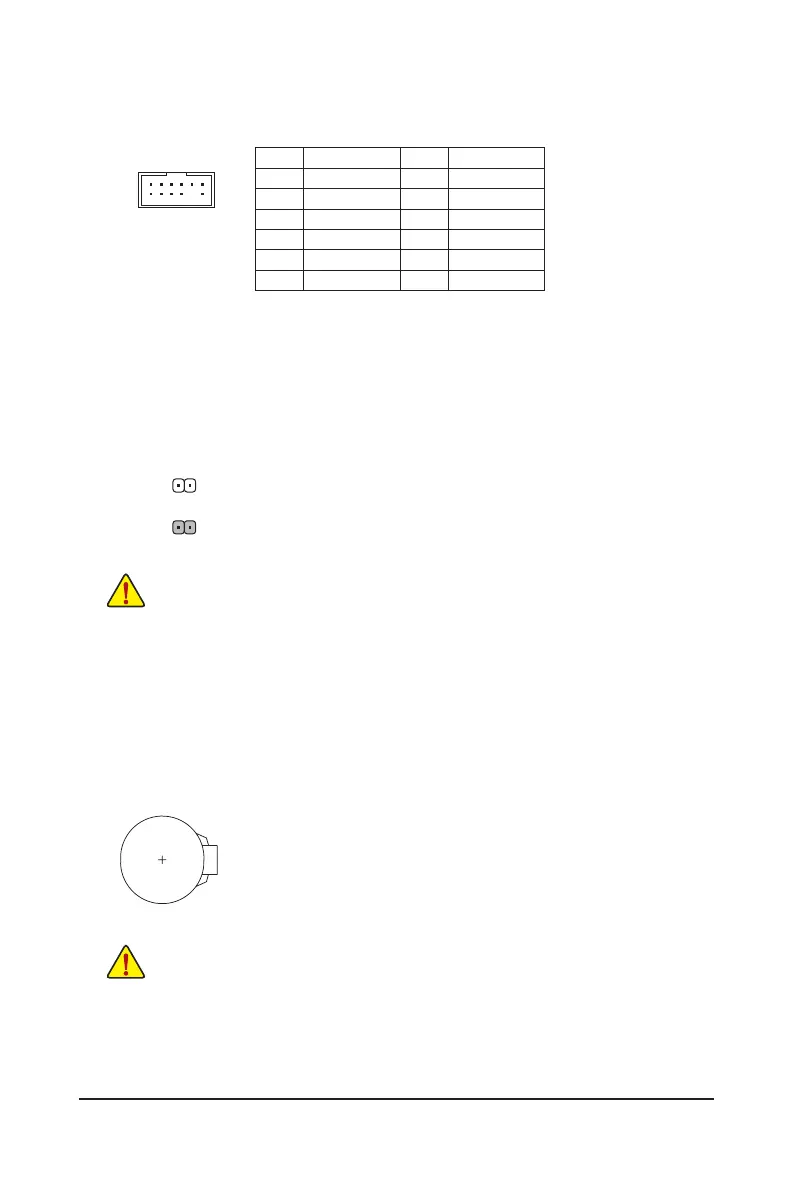 Use this jumper to clear the BIOS conguration and reset the CMOS values to factory defaults. To clear
