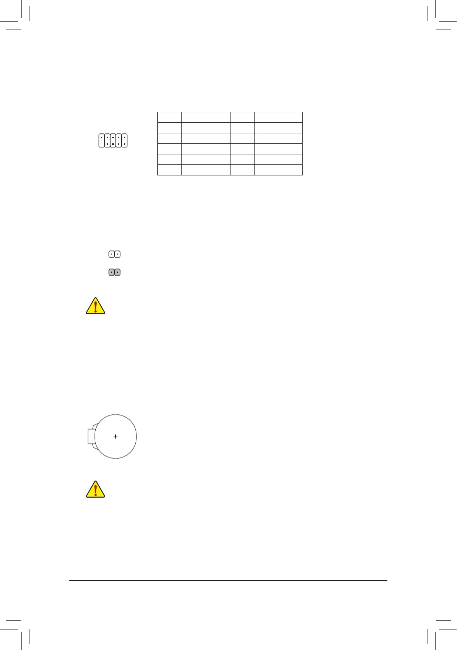 Use this jumper to clear the BIOS conguration and reset the CMOS values to factory defaults. To clear
