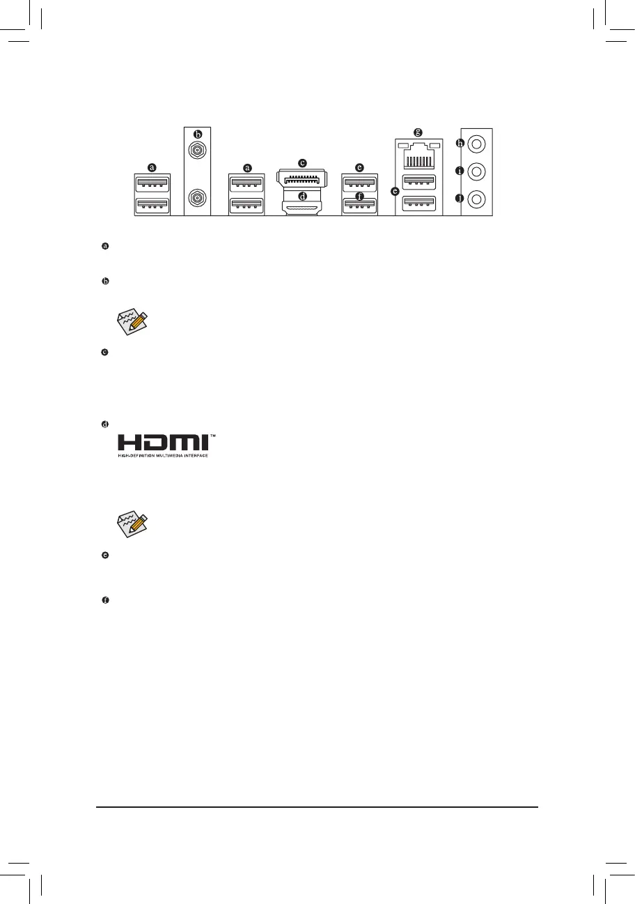 The USB port supports the USB 2.0/1.1 specication. Use this port for USB devices. Use this port for USB