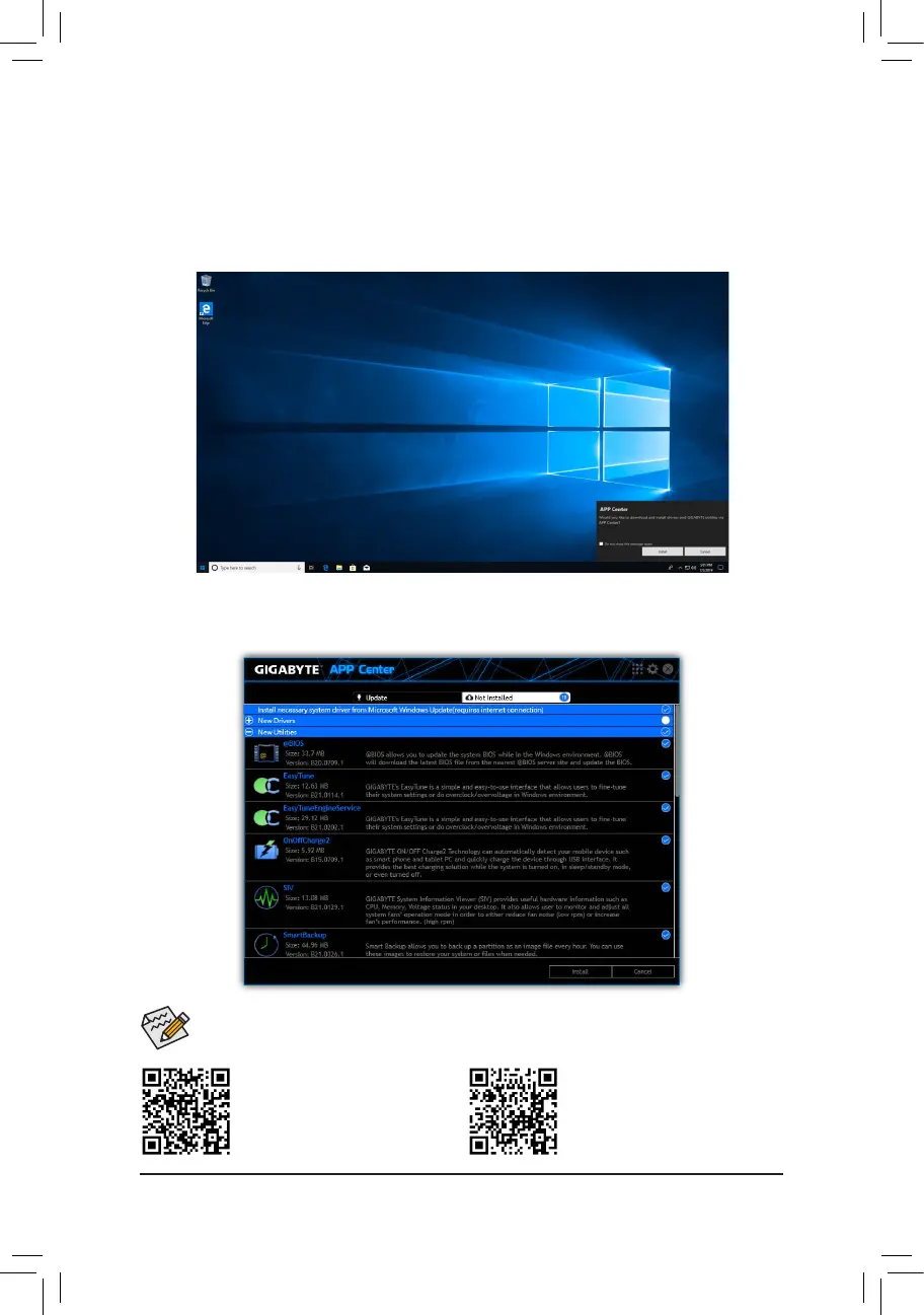 if you want to download and install the drivers and GIGABYTE applications via APP Center. Click Install to