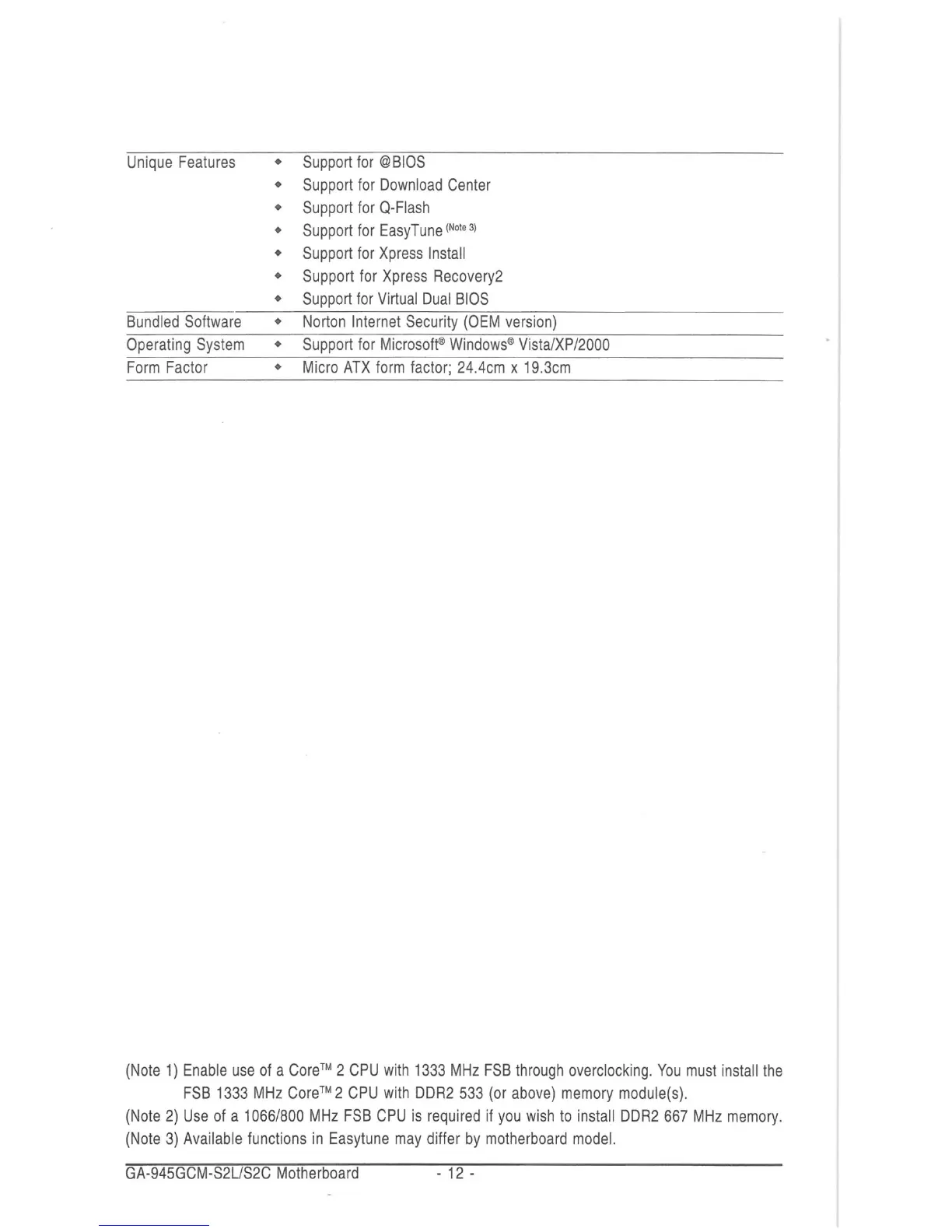 (Note 1) Enable use of a Core™ 2 CPU with 1333 MHz FSB through overclocking. You must install the