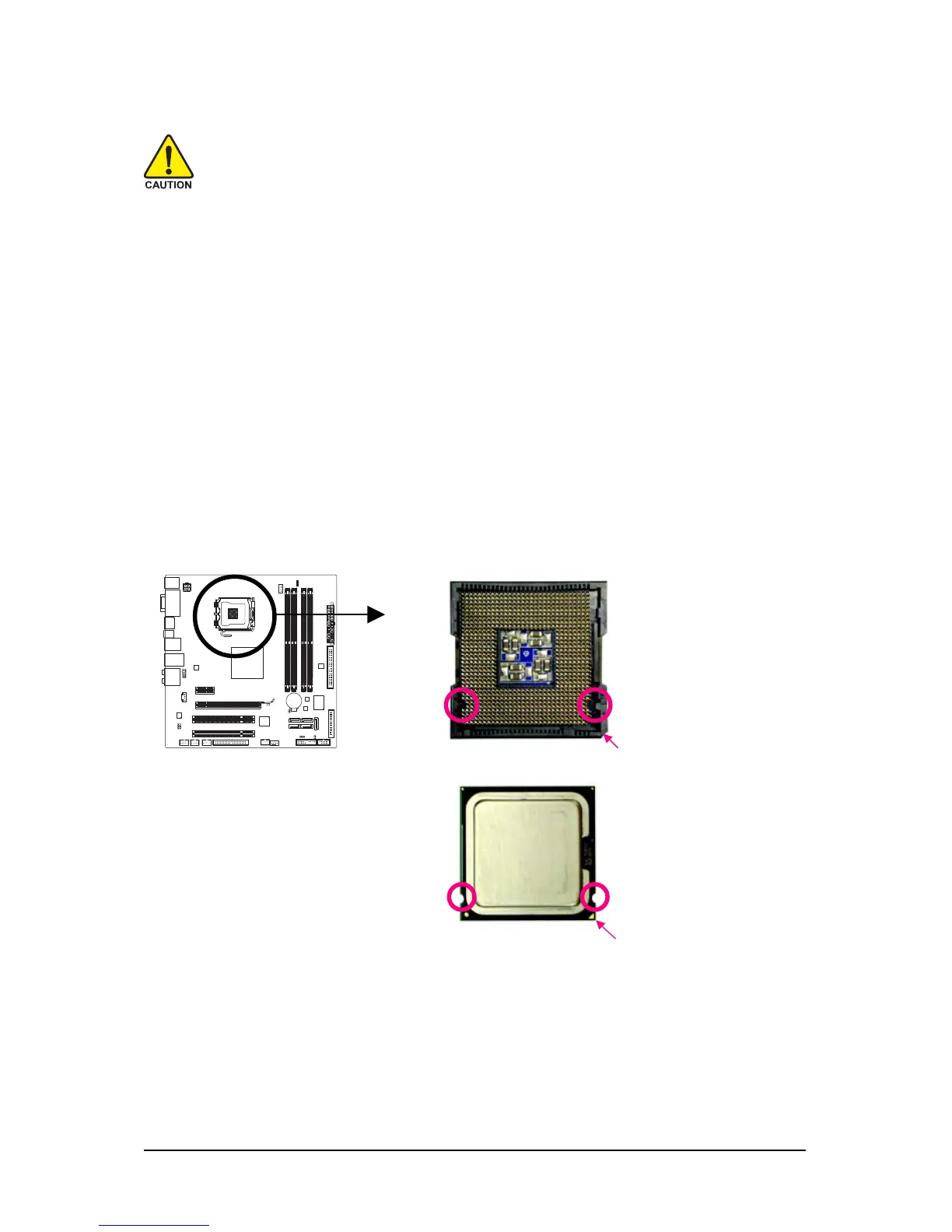 • Locate the pin one of the CPU. The CPU cannot be inserted if oriented incorrectly. (Or you
