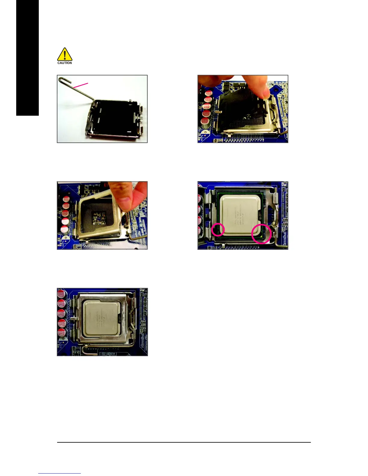 fingers. Align the CPU pin one marking (triangle)