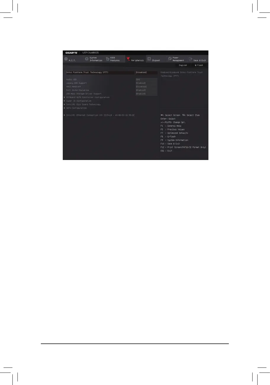 This sub-menu appears only when Intel Platform Trust Technology is set to Enabled.
