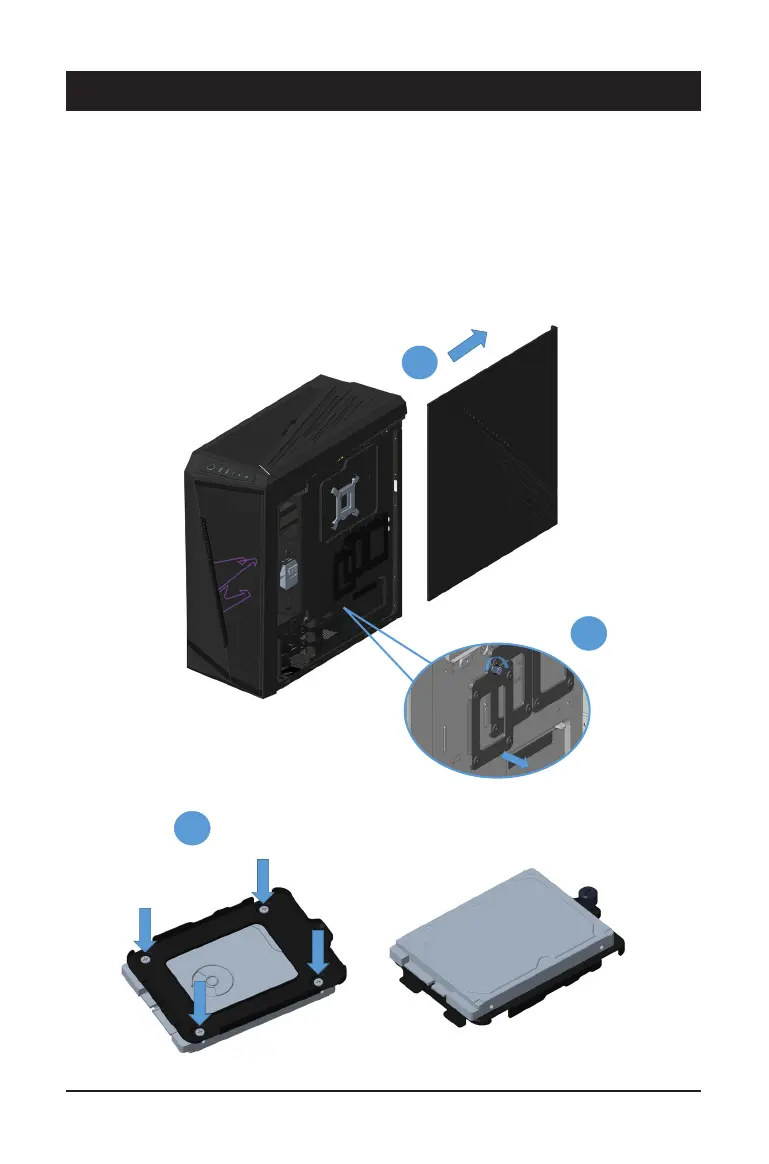 1. Remove the two screws from the side panel. Then pull out the side panel.