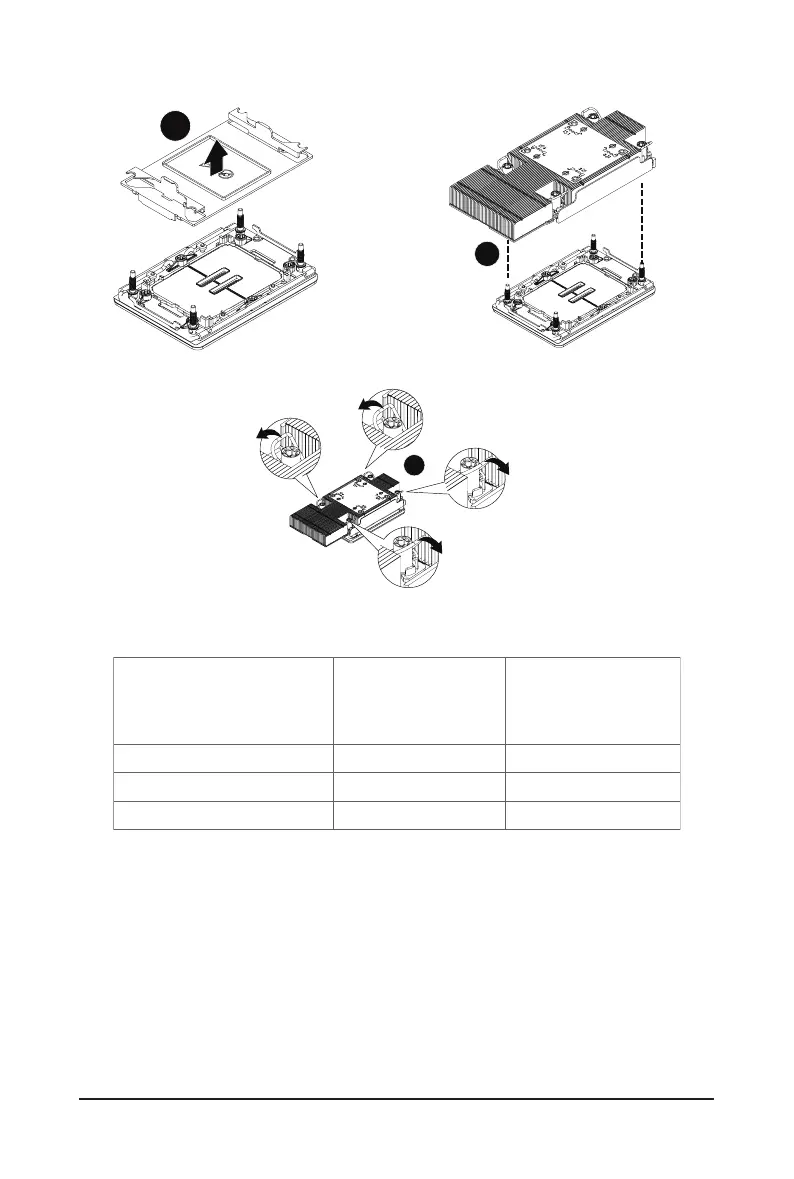 • When installing the heat sink to CPU, use T30-Lobe driver to tighten 4 captive nuts in