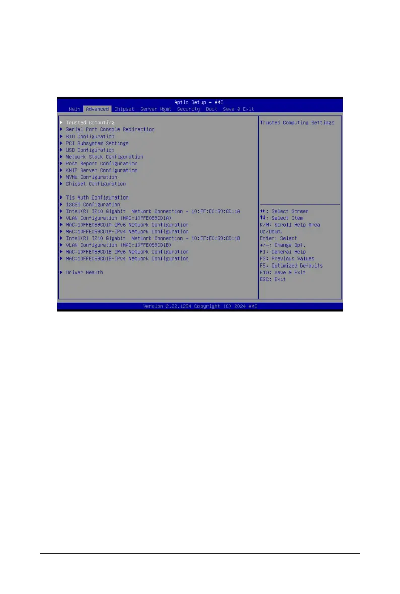 Select a submenu item, then press <Enter> to access the related submenu screen.