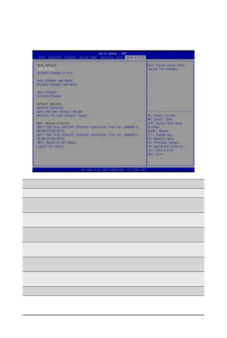 The Save & Exit menu displays the various options to quit from the BIOS setup. Highlight any of the exit