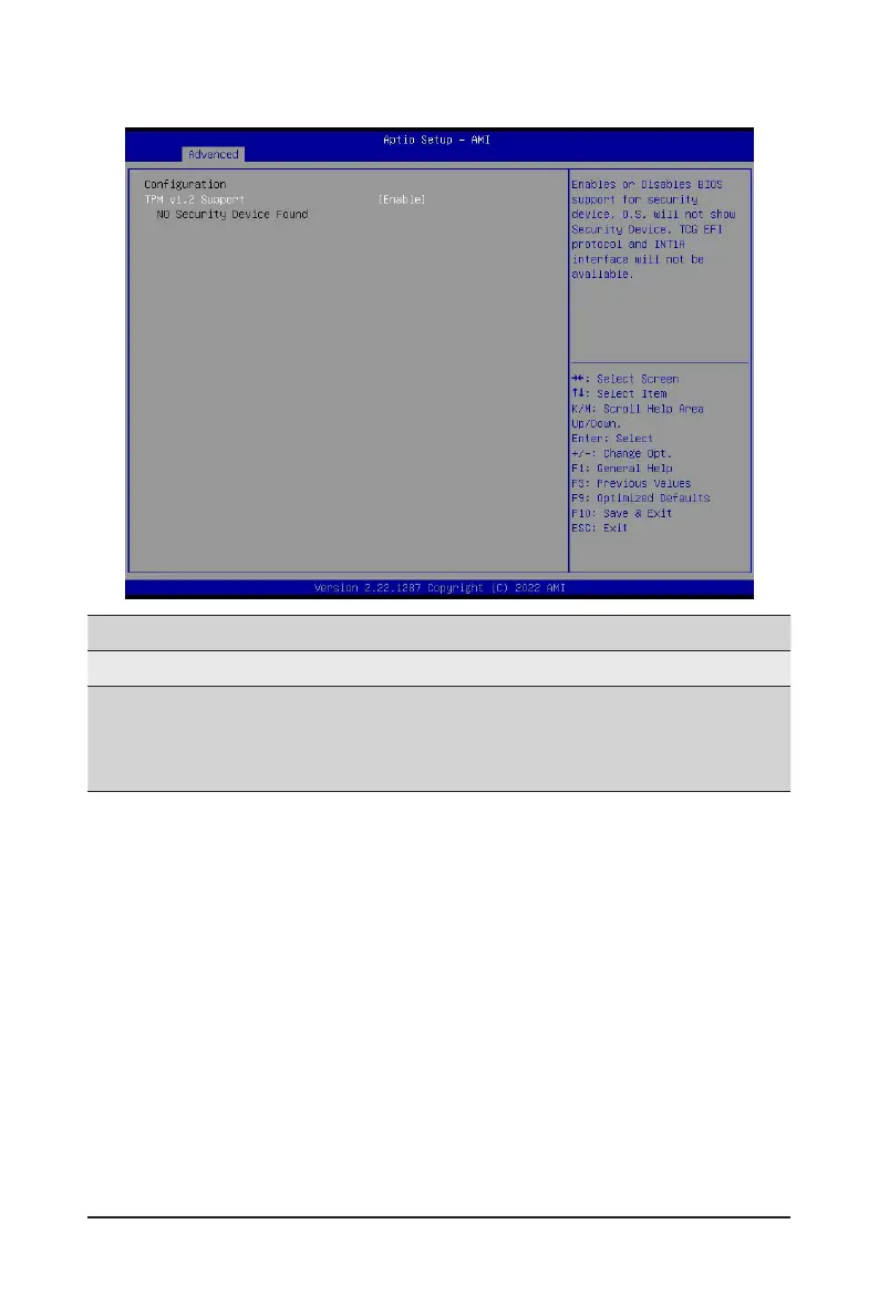 Enable/Disable BIOS support for security device. OS will not show