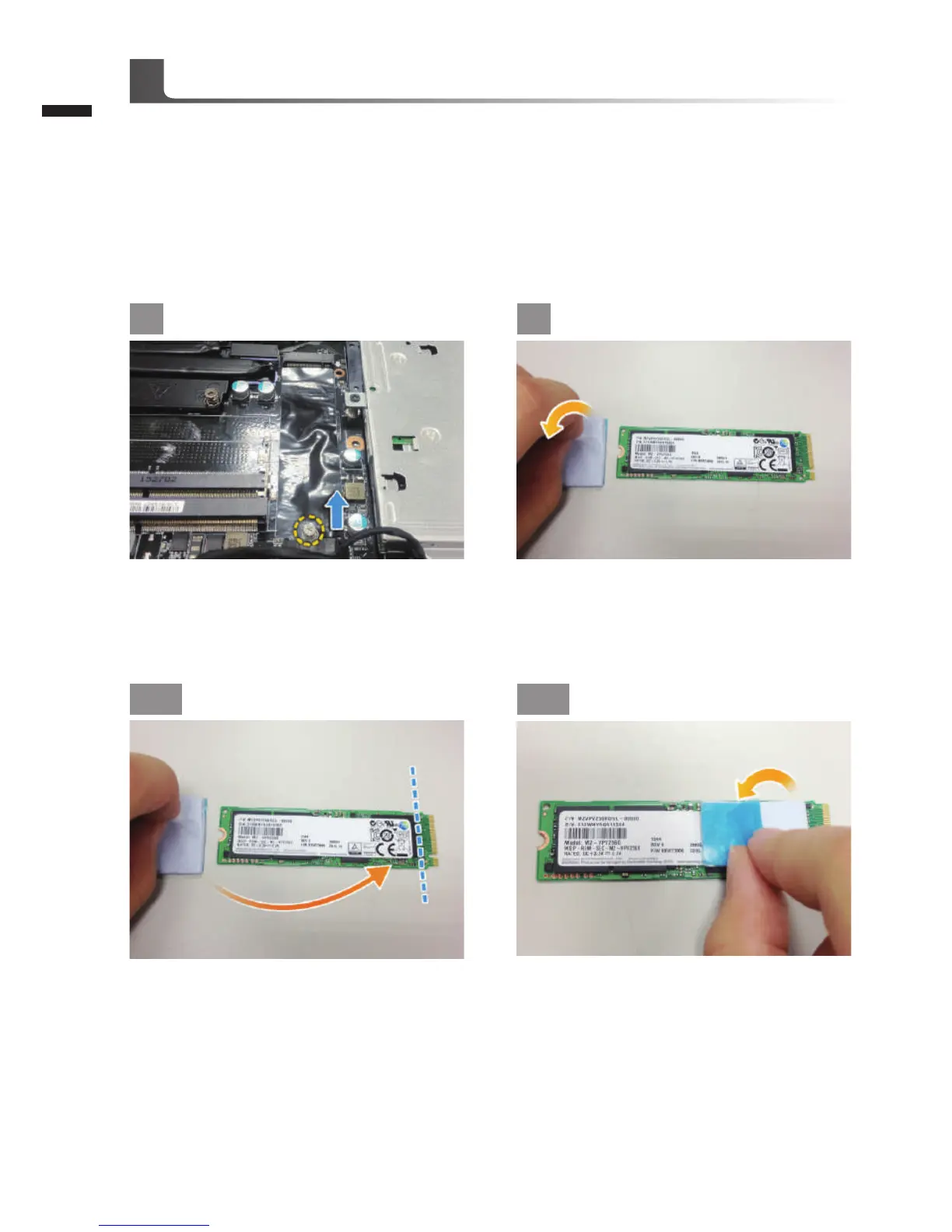 • To paste the thermal pad on the top of M.2 SSD and aligned with the chip on the right side,