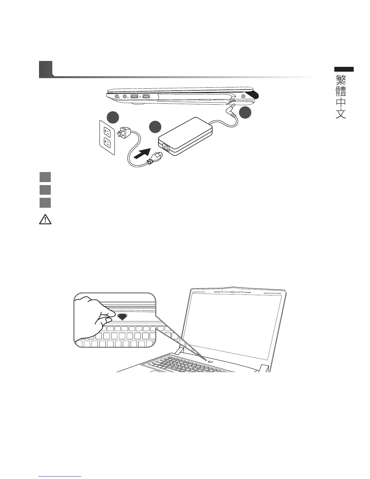 •第一次啟動筆記型電腦之前,請先確認已經將電源變壓器連接至電腦。