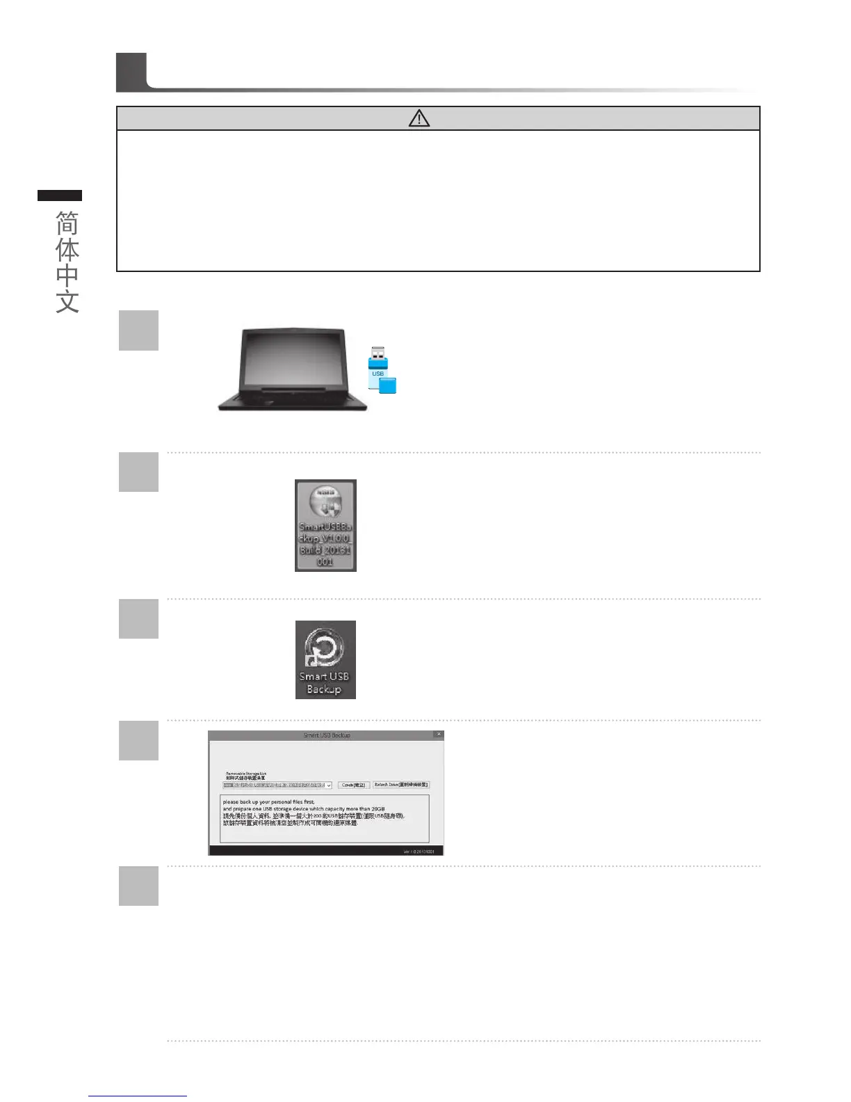 利用還原●USB●隨身碟進行系統還原時請勿移除或關掉電