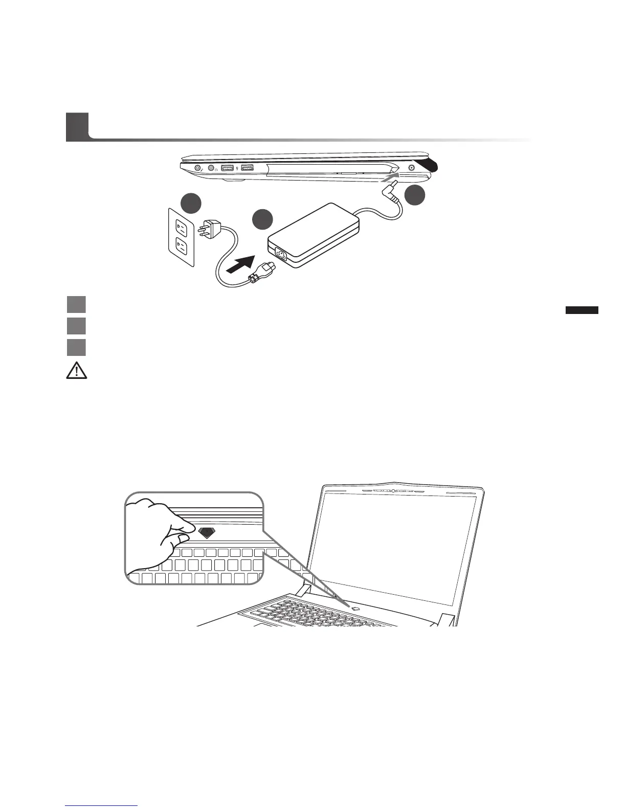 2 Branchez l'adaptateur AC à la prise "DC-in jack" située sur le coté droit de votre notebook