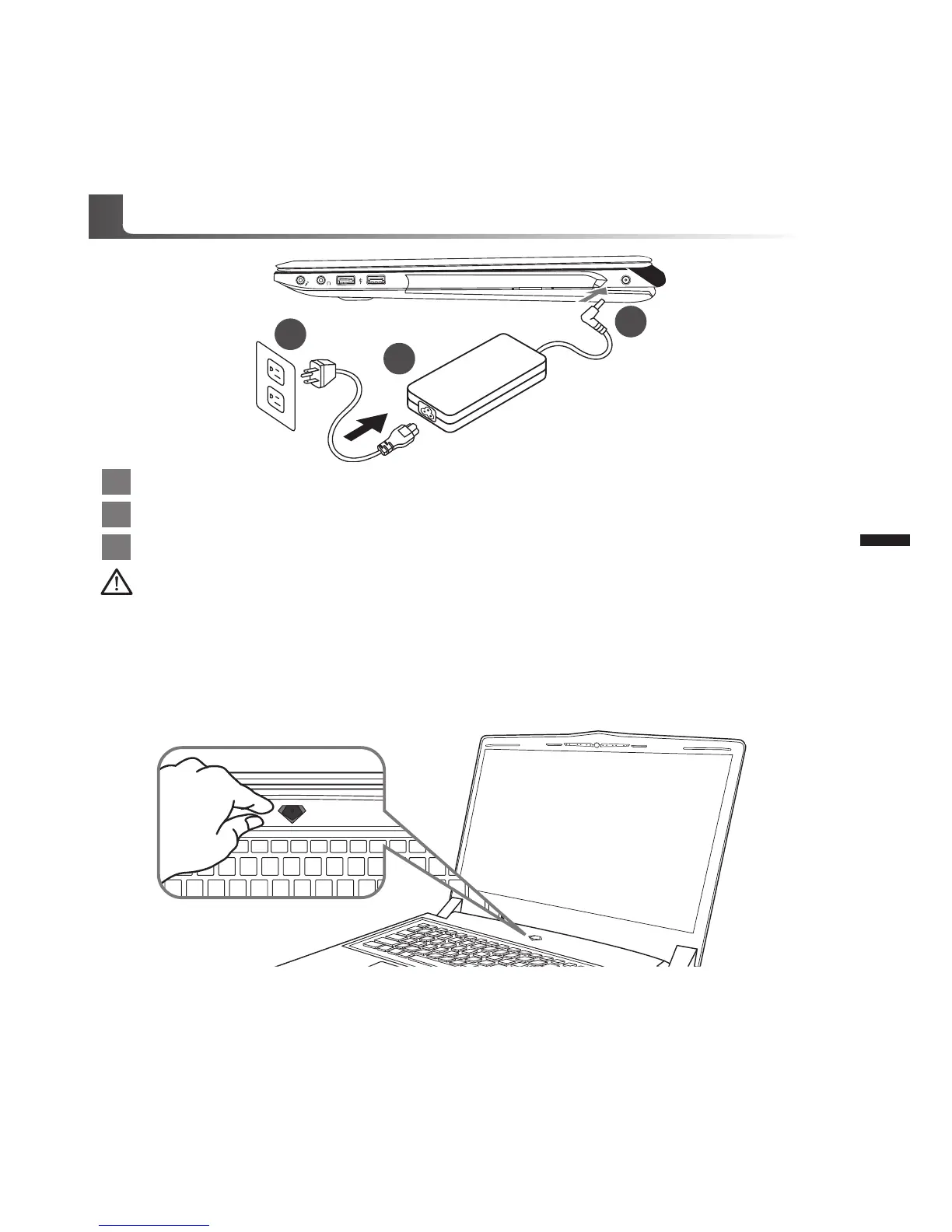 Assicurarsi che il notebook è collegato ad adattatore di alimentazione con messa a terra prima di accenderlo per la prima volta.