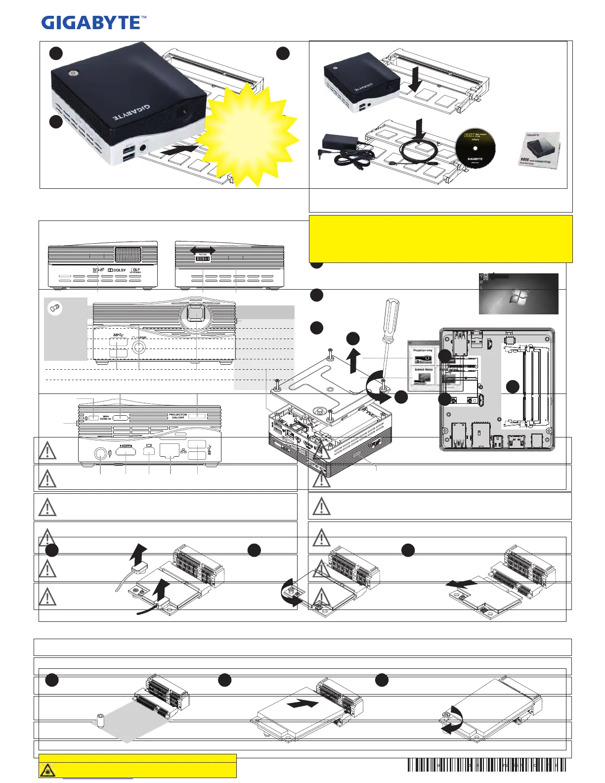 ● For a list of tested memory, mSATA, wireless adapters and OS supported, go to: hp://www.gigabyte.com ● To download the latest drivers and BIOS updates, go to: hp://www.gigabyte.com