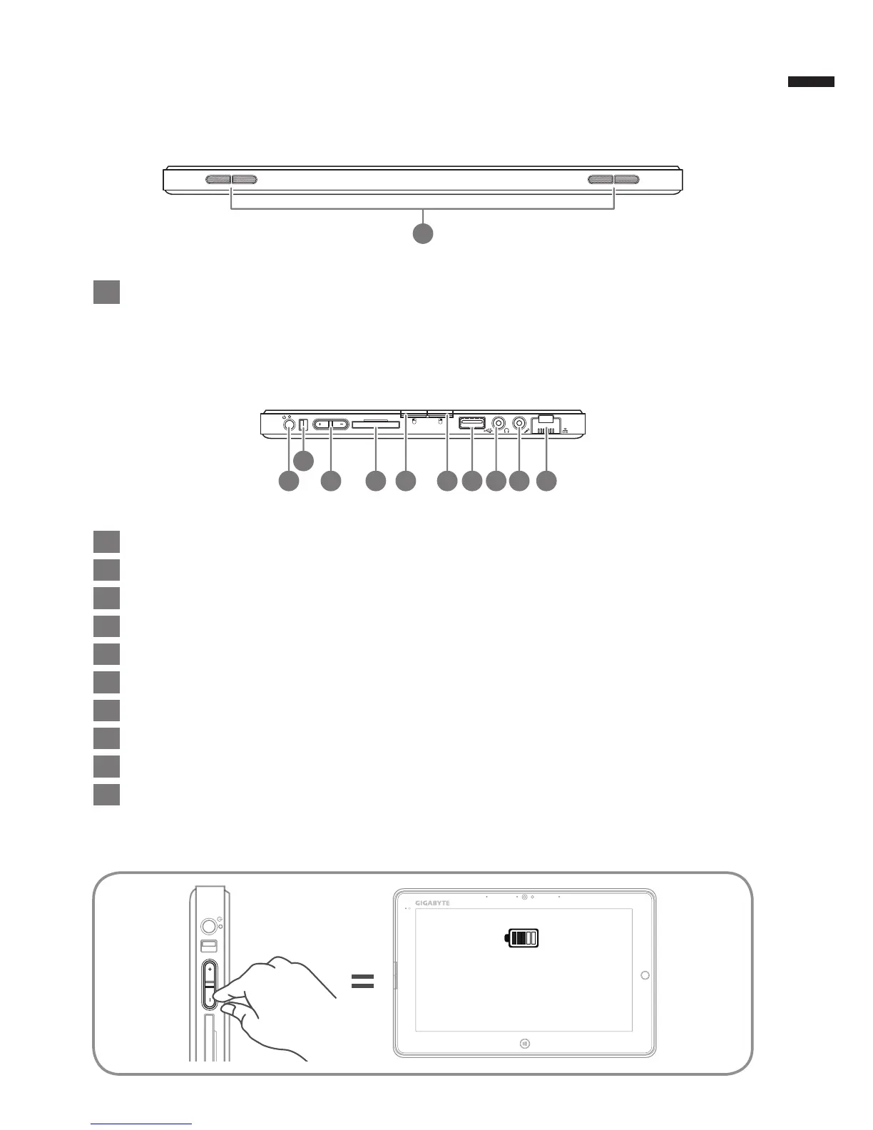 Press the "-" volume button when the computer is off and the display will indicate the battery capacity status.