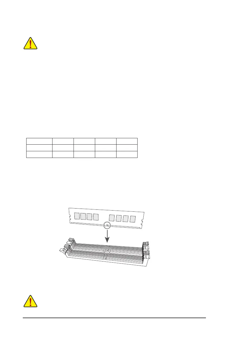 capacity, brand, speed, and chips be used. (Go to GIGABYTE's website for the latest supported