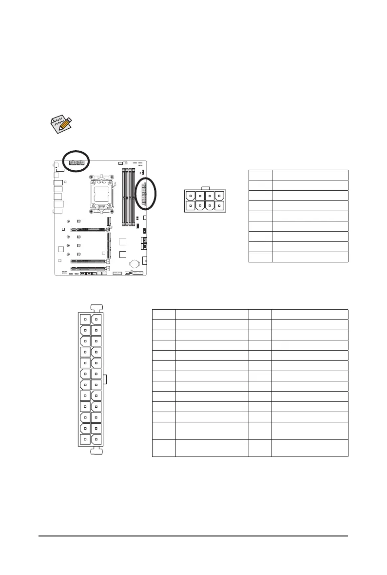 on the motherboard. Before connecting the power connector, rst make sure the power supply is turned