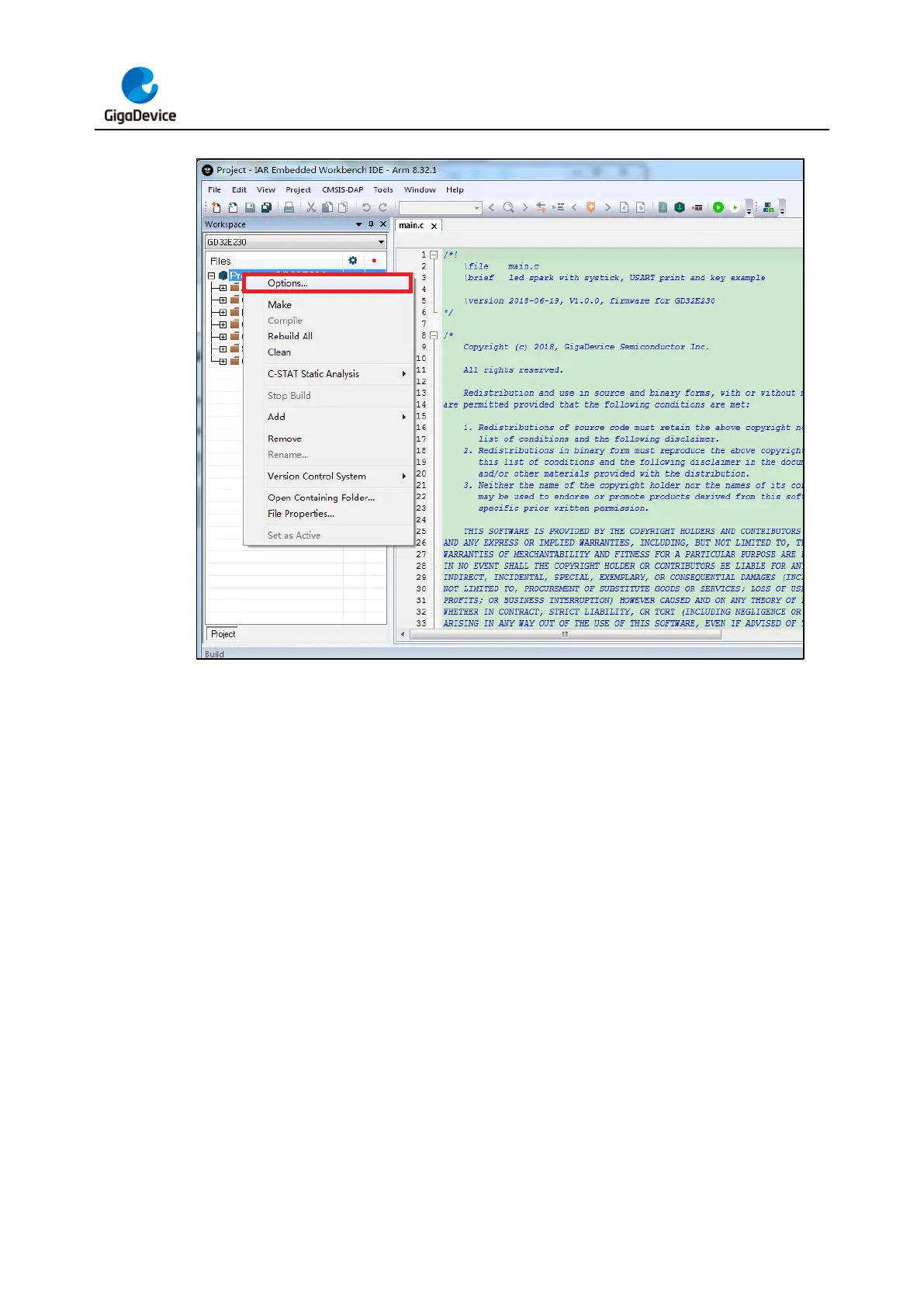 GigaDevice Semiconductor GD-Link Adapter - Figure 4-4. Project Options in IAR