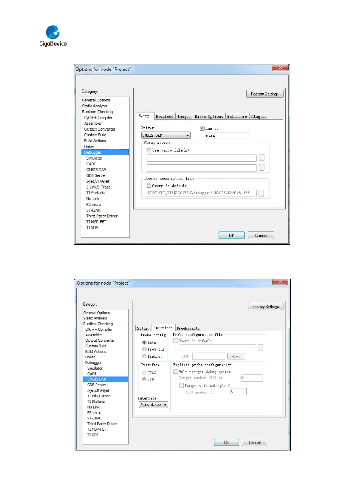 GigaDevice Semiconductor GD-Link Adapter - Figure 4-5. Debugger Settings in IAR; Figure 4-6. Interface Selection in IAR
