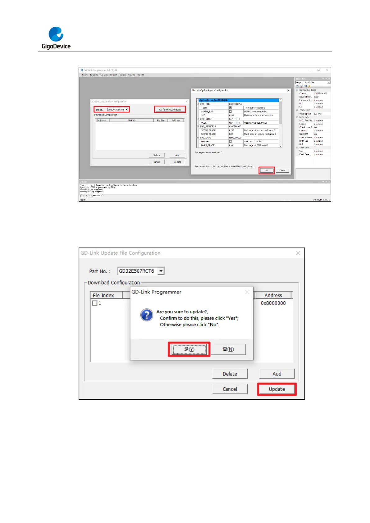 GigaDevice Semiconductor GD-Link Adapter - Figure 3-5. Configure Option Byte; Figure 3-6. Updata bin File