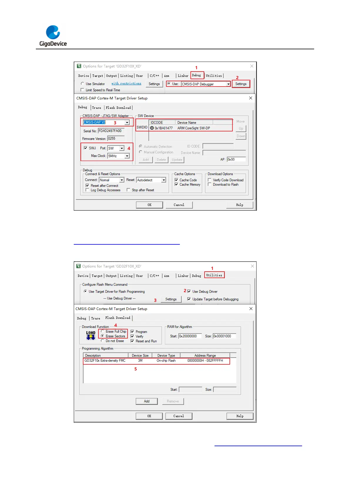 MCU download algorithm and configure the erase mode and other settings, as shown in