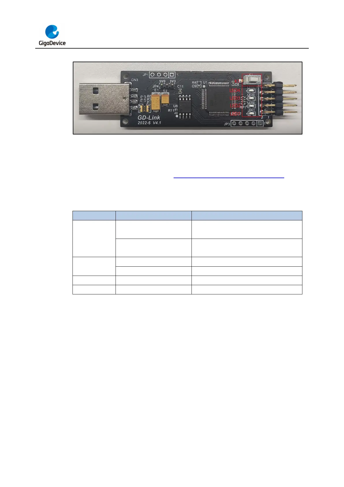 different working states of GD-Link V2. Table 2-2. Working status of GD-Link V2 provides