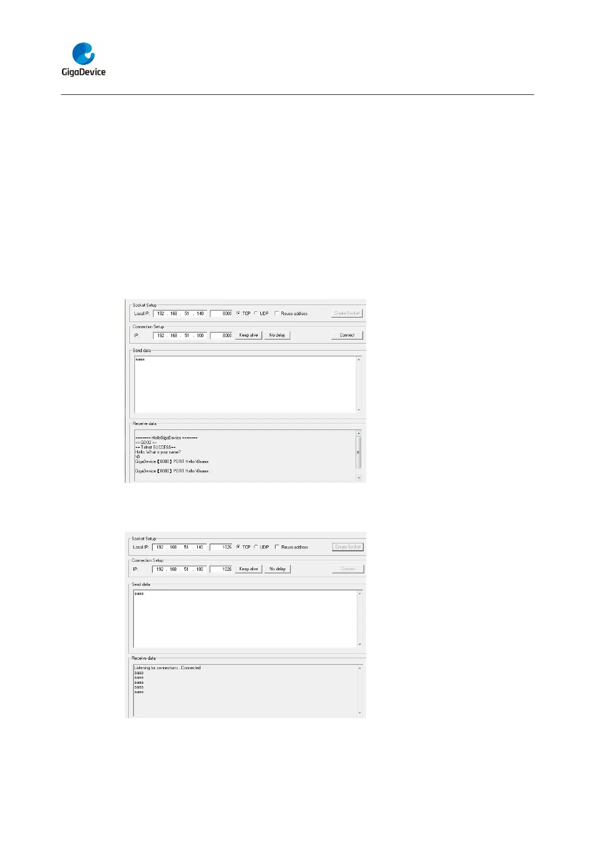 3) udp application. Users can link the eval board with another station, using 1025 port.
