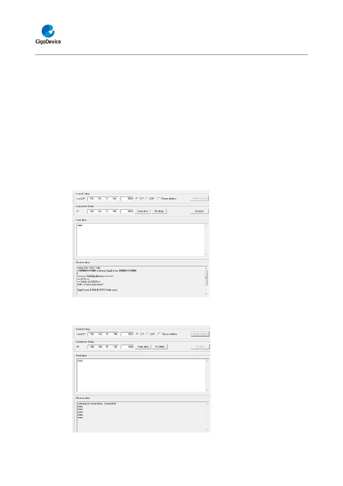 Note: Users should configure ip address, mask and gw of GD32450Z-EVAL-V1.1 board,