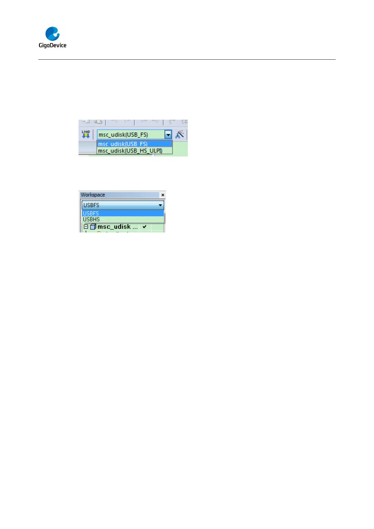 - GD32450Z_EVAL_USBFS: to configure the project for GD32F450Z devices using