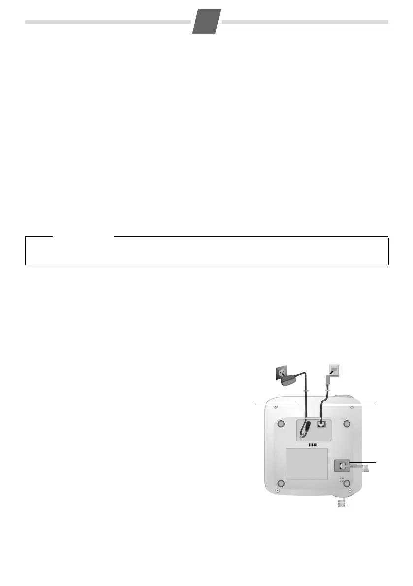 handset to the base station 3 and insert the cables into the