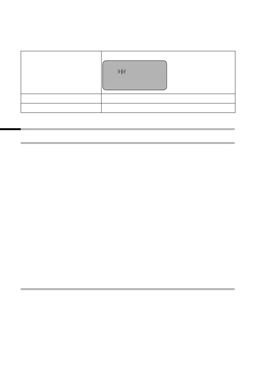 features offered by the individual handset) by a message in the display, by flashing of