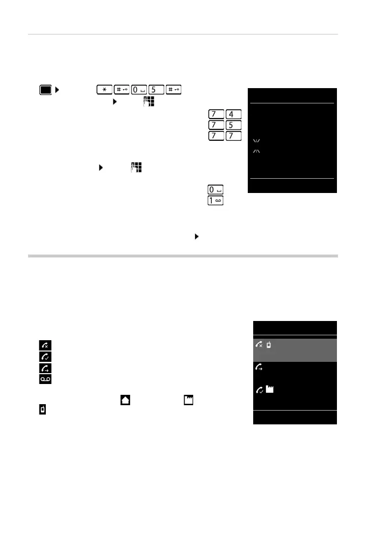 The telephone saves different types of calls (missed, accepted and outgoing calls) in lists.