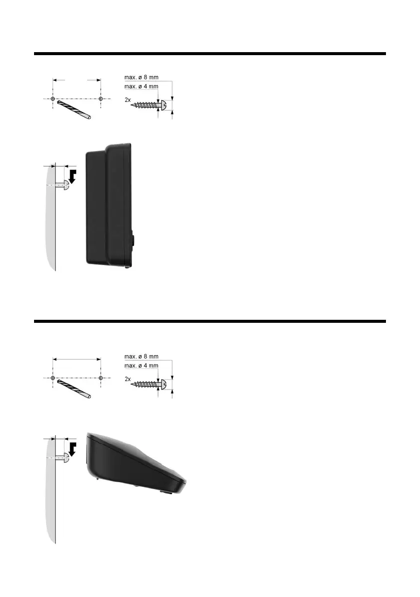 Gigaset E490 - Mounting the Base Station to the Wall; Mounting the Charging Cradle to the Wall
