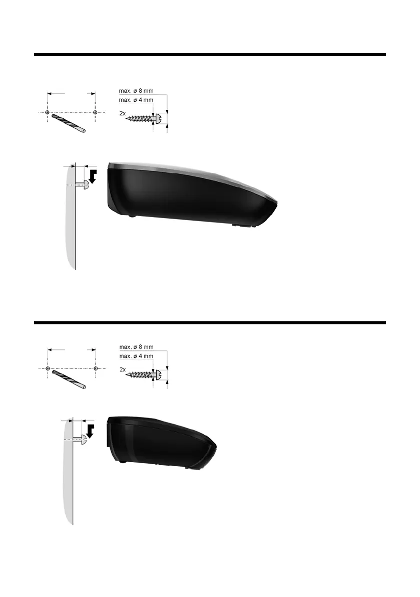 Gigaset E500 - Wall Mounting Instructions; Mounting the E500 Base on the Wall; Mounting the Charger on the Wall