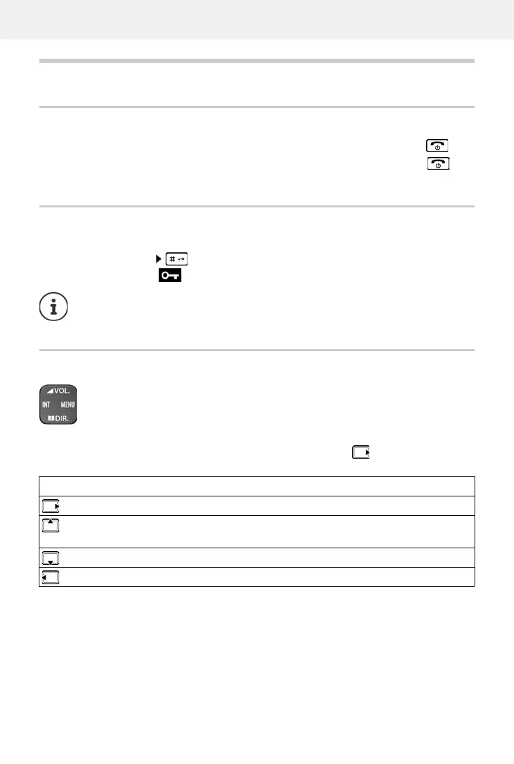 Switch the handset on and off