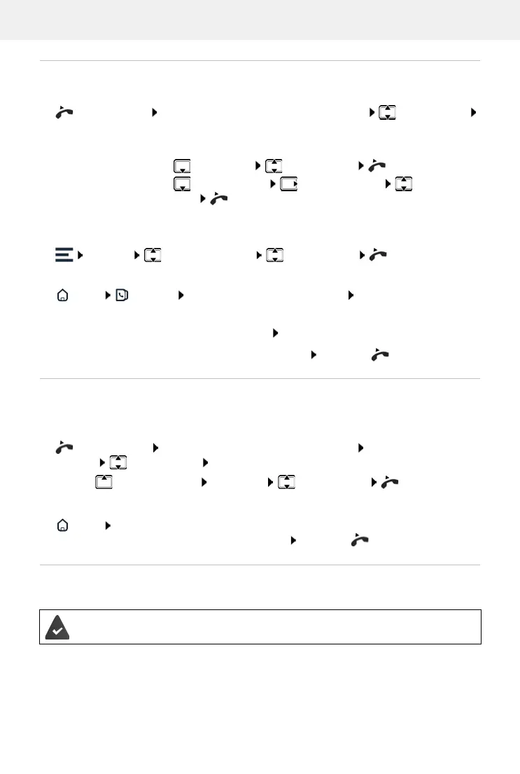 Open the call lists Select a list Select an entry Lift the handset