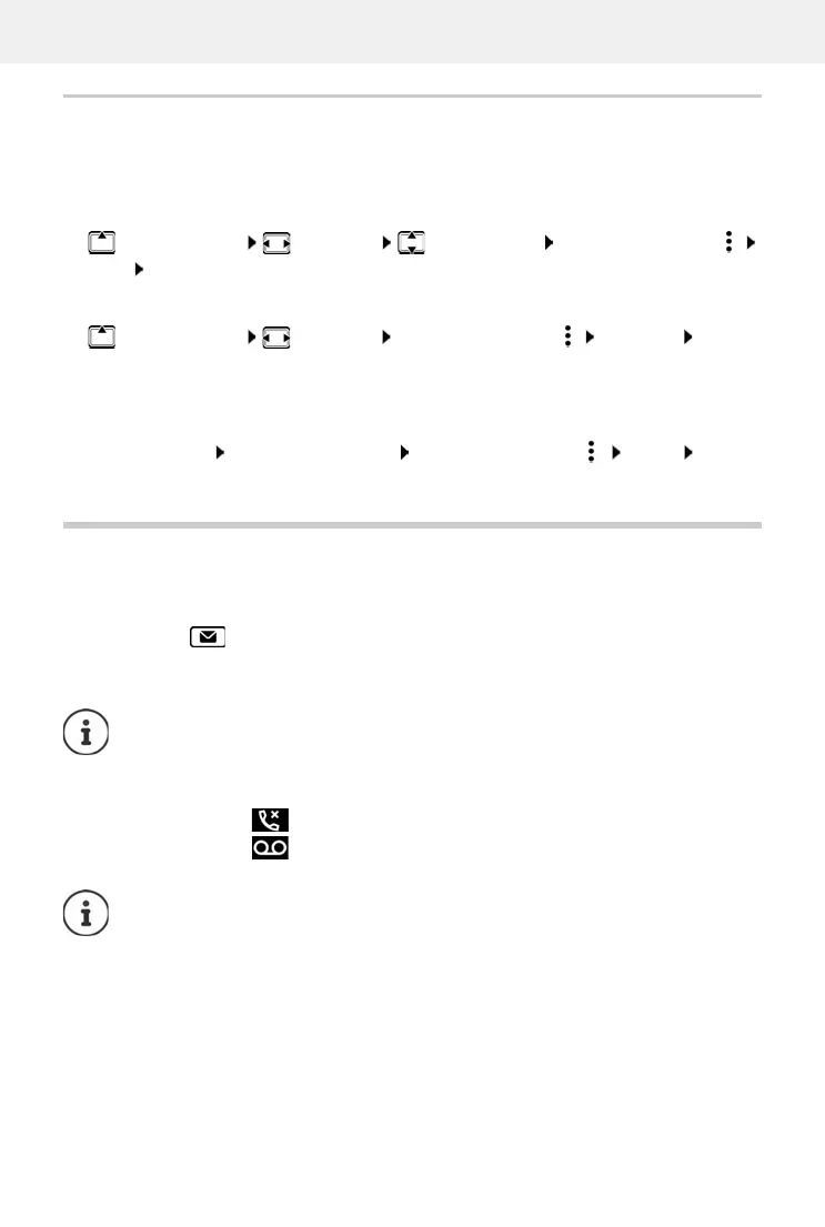 The respective number of missed calls or new voice messages is shown next to the