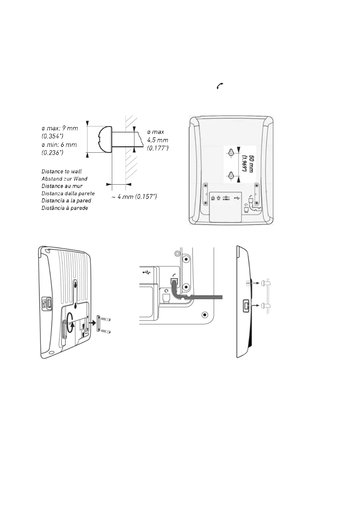 Anchor the screws in the wall, using the measurements given in Fig. 1 and Fig. 2.