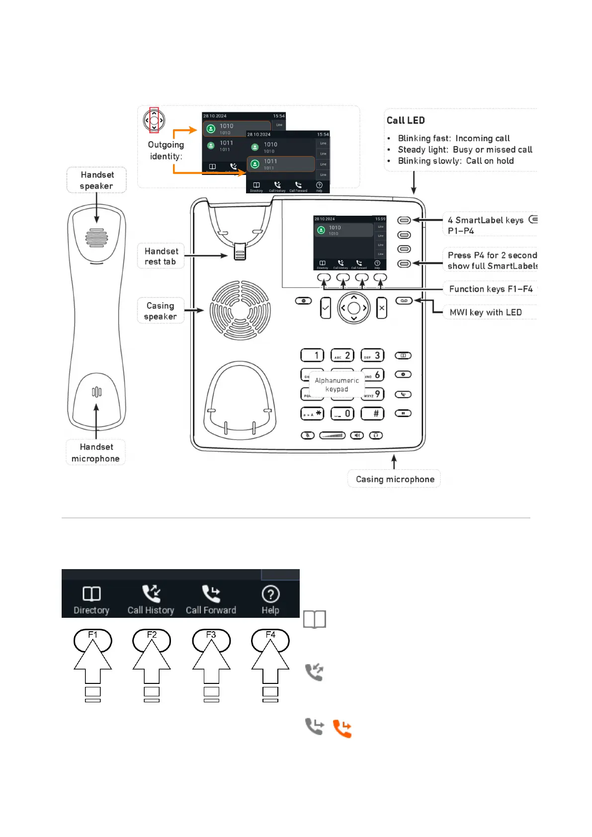 Context-sensitive, programmable function symbols and function keys F1–F4