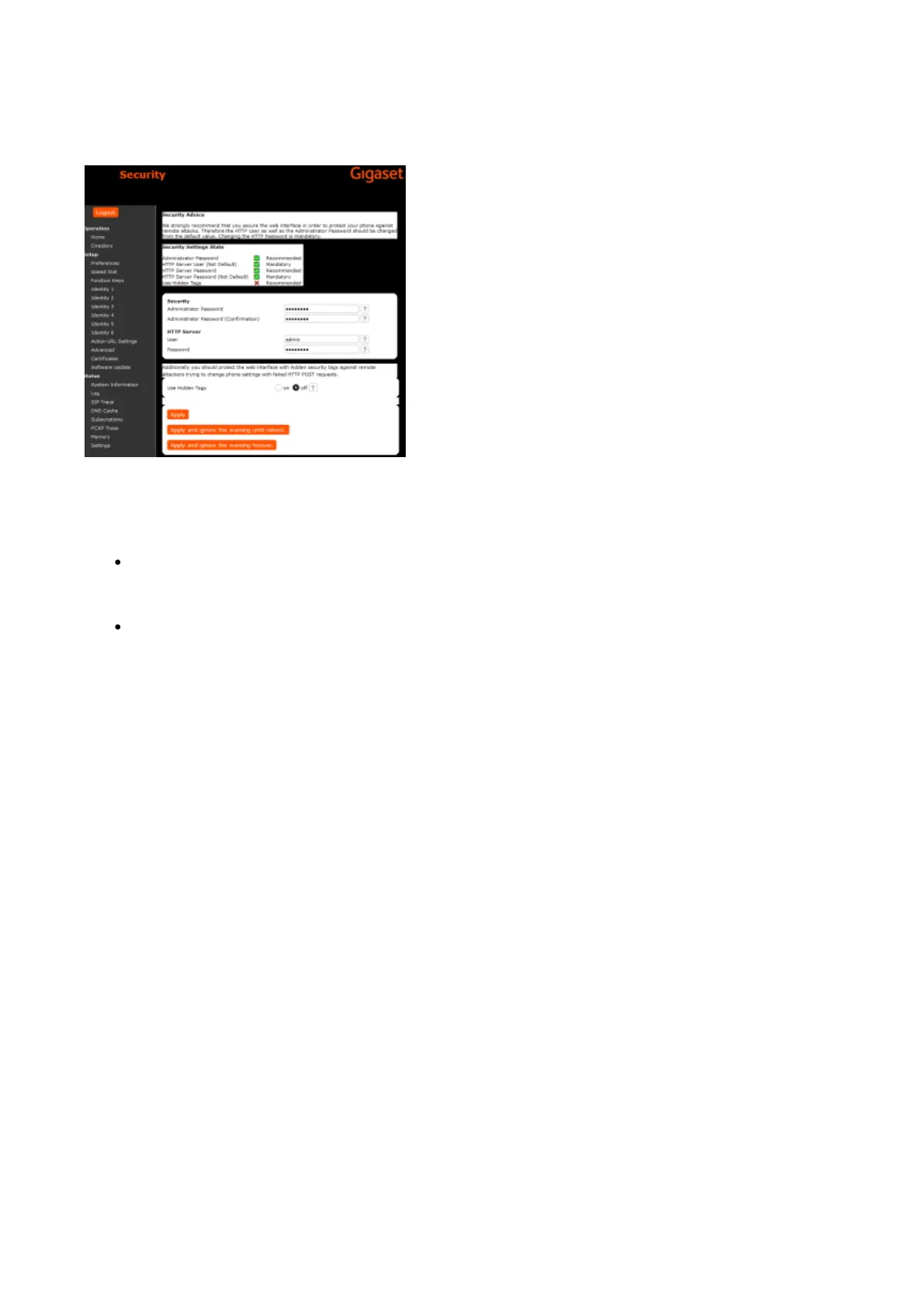 mode to administrator mode; many settings will be inaccessible. Without HTTP user name and password you