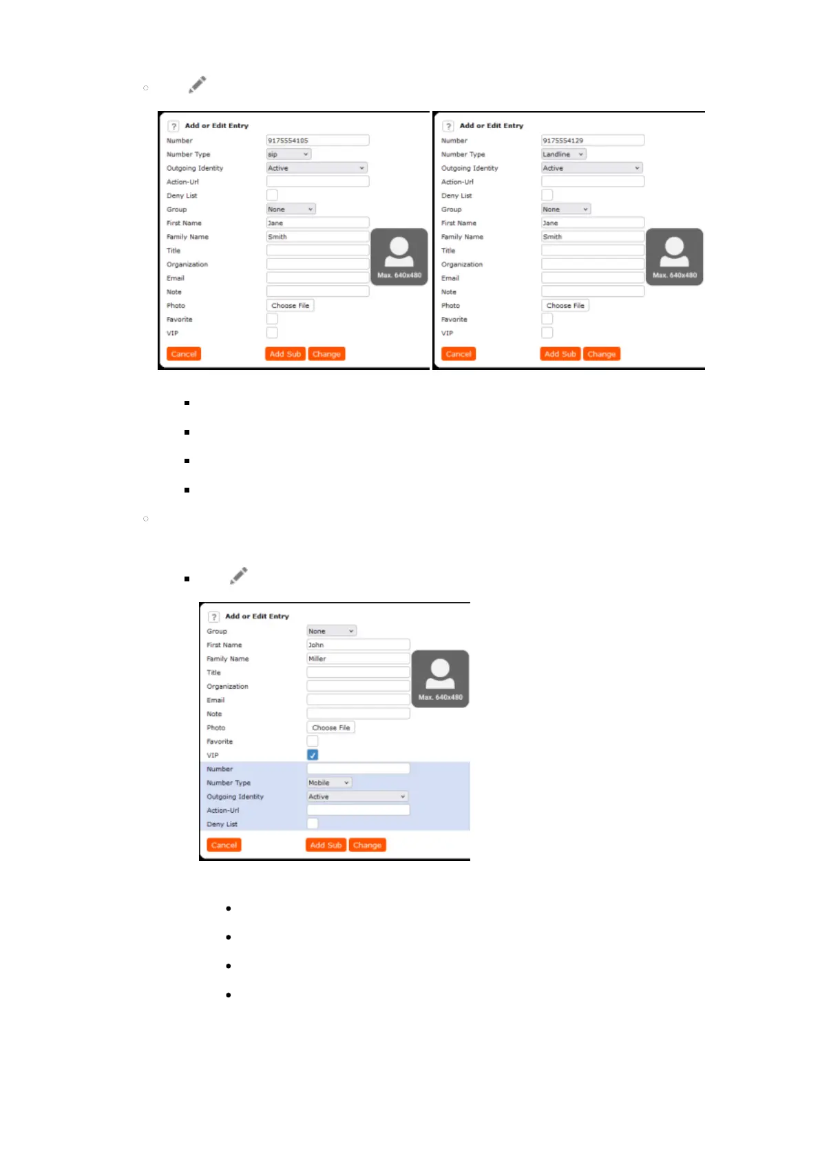 John Miller's entry has a SIP number and a private number. In this example, his cell phone number will be