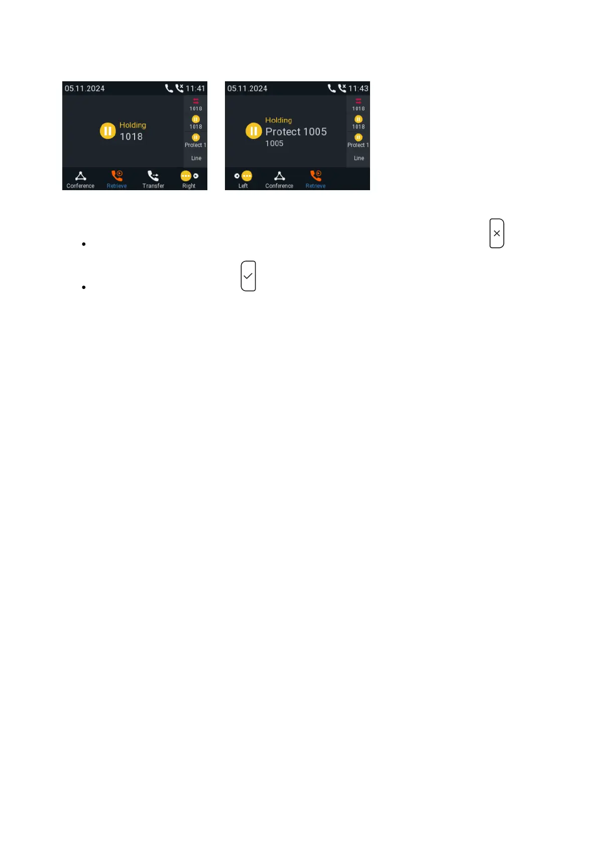 When a held call is on-screen, press to connect to it and put the currently connected call on hold.