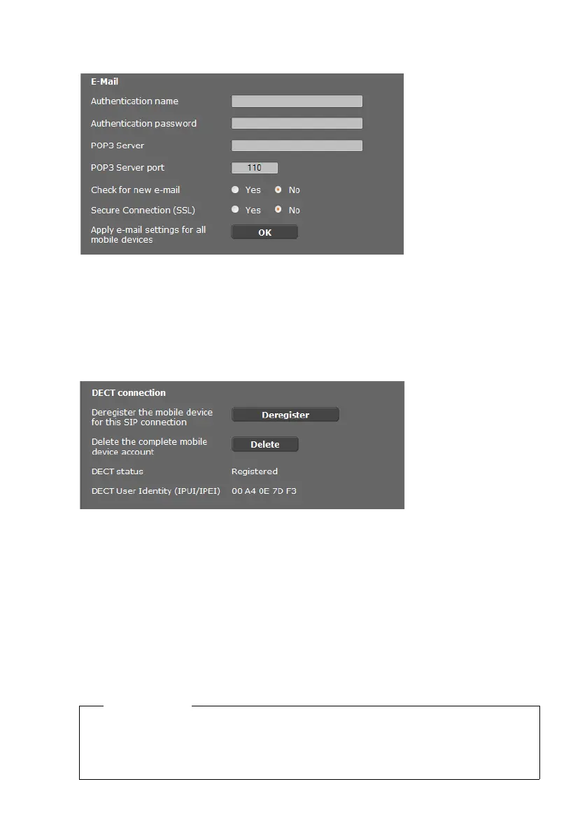 ¤ If the DECT Manager is to check the receipt of eMails for the handset, enter the data for