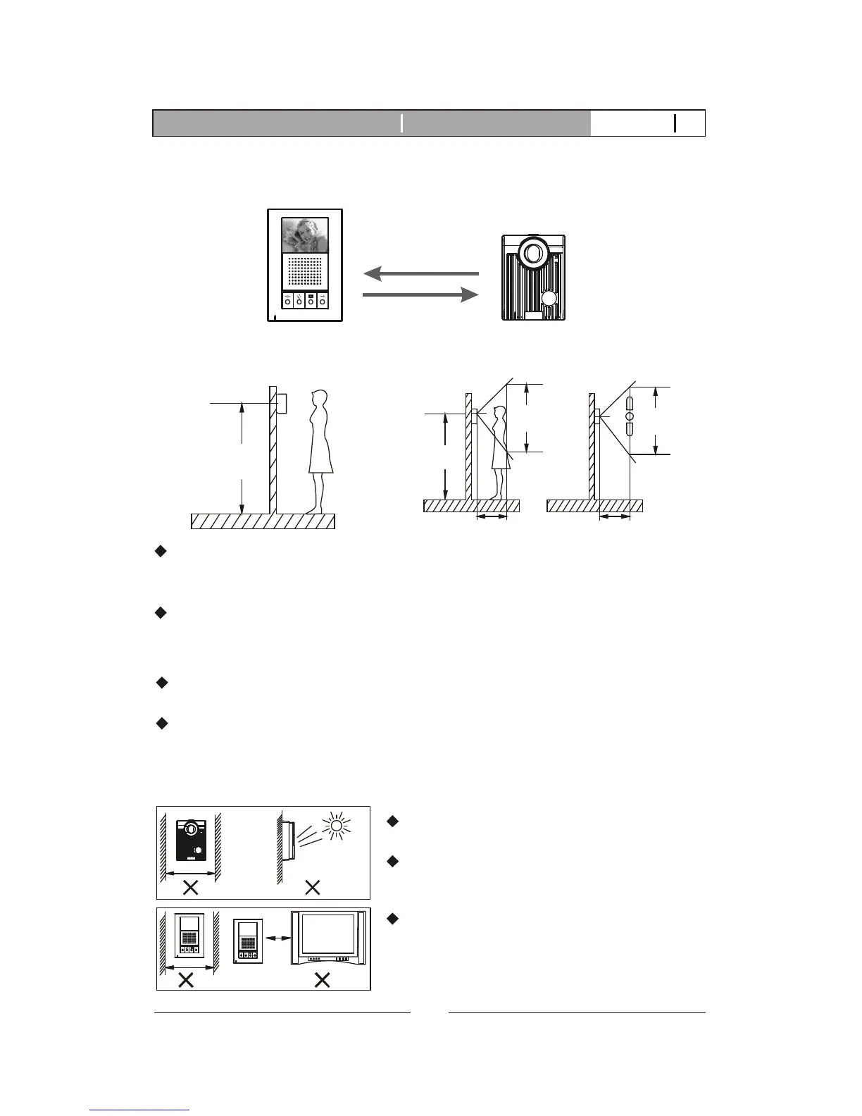 The proper height of monitor or door camera is 160~170cm(63"~67")