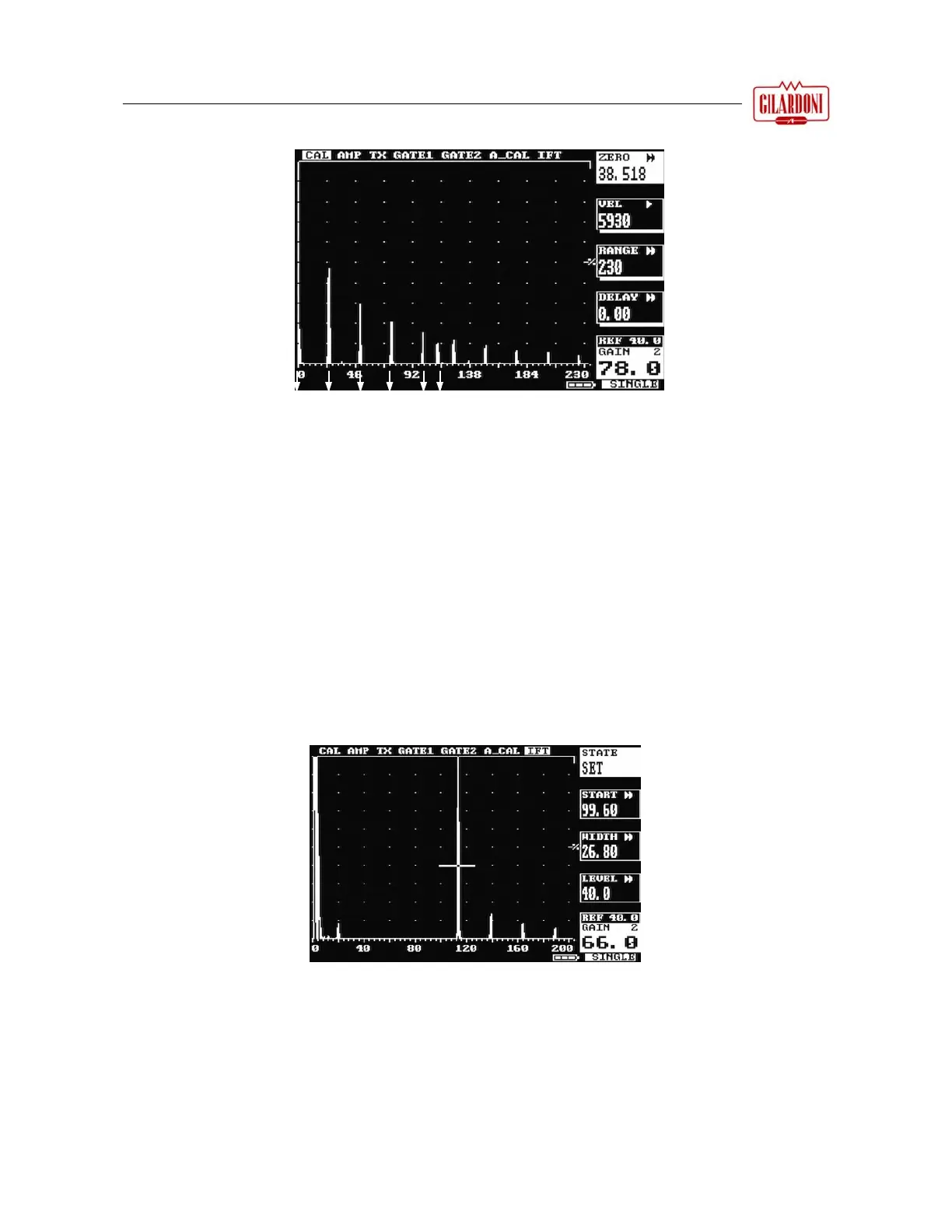 Per monitorare i difetti all’interno del materiale in esame, è possibile posizionare un gate tra l’eco di