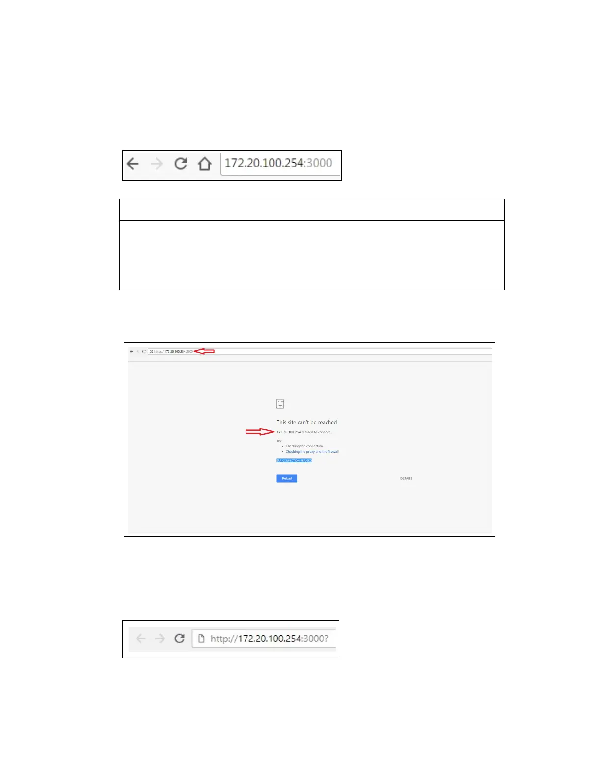 In such cases, enter http://172.20.100.254:3000? (question mark “?” appended) in the address