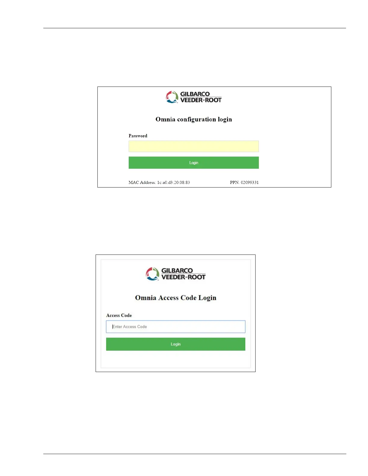 Figure 5-9: Login Page for Access Code Mode